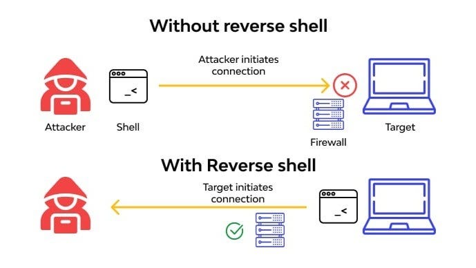 - Avantajı: Çoğu güvenlik duvarı, iç ağdan dışarıya doğru giden bağlantılara izin verir. Bu nedenle, reverse shell genellikle güvenlik duvarlarını aşmada bind shell’den daha etkilidir. Bu durum, reverse shell’i sızma testlerinde ve gerçek dünya saldırılarında daha popüler bir seçenek yapar.